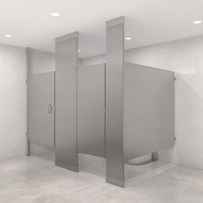 Stainless Steel bathroom partitions provide a modern look to any commercial restroom. This material offer a modern style and elegant finish to compliment any higher-end commercial restroom.